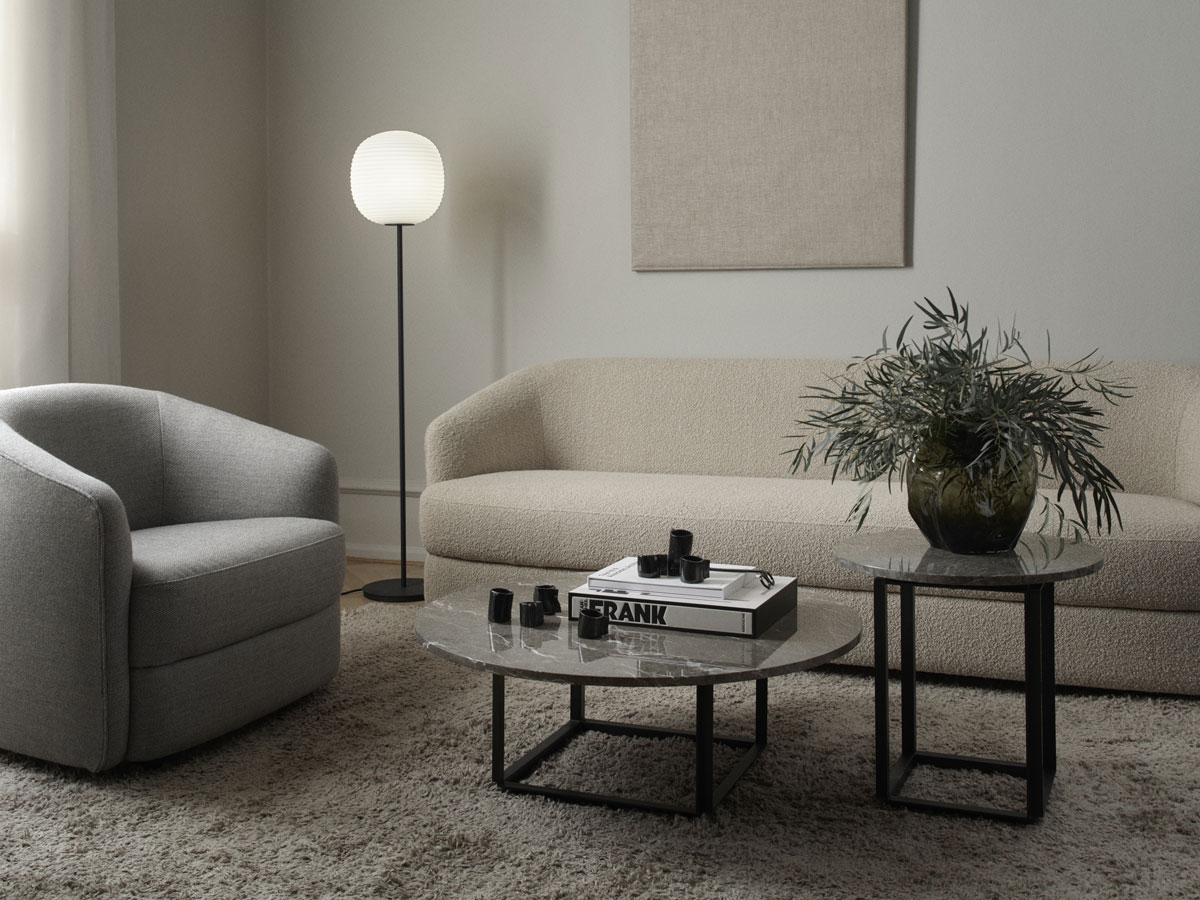 Til et hjem med moderne indretningsstil passer en sofa med et lige, minimalistiskt og afklaret formsprog. Her kan en sofa med stram og tydelig formsprog forstærke rummets samlede følelse. I et hjem med skarpe og lige vægge kan et sofabord med organisk form bidrage til et blødere og mere indbydende indtryk.