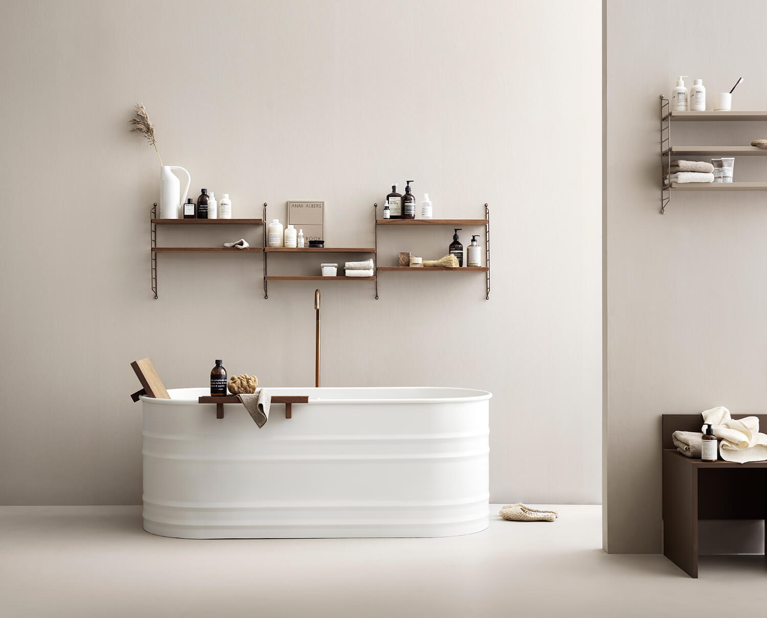 Hvis køkkenet er hjemmets hjerte, så er badeværelset hjemmets lunger. Badeværelset skal være et sted for afslapning og harmoni - et rum at trække vejret roligt ind og ud i. Med stilfuld og praktisk badeværelsesopbevaring fra String kan du skabe den afslappende oase, som er nødvendig i hjemmet. String badeværelse skaber den orden og struktur, som de fleste af os ønsker at have i badeværelset gennem de praktiske hylder, badeværelsesskabe og de mange smarte opbevaringsløsninger. Med en badeværelseshylde fra String optimerer du pladsen i badeværelset, samtidig med at du får en moderne og designet følelse med din indretning.