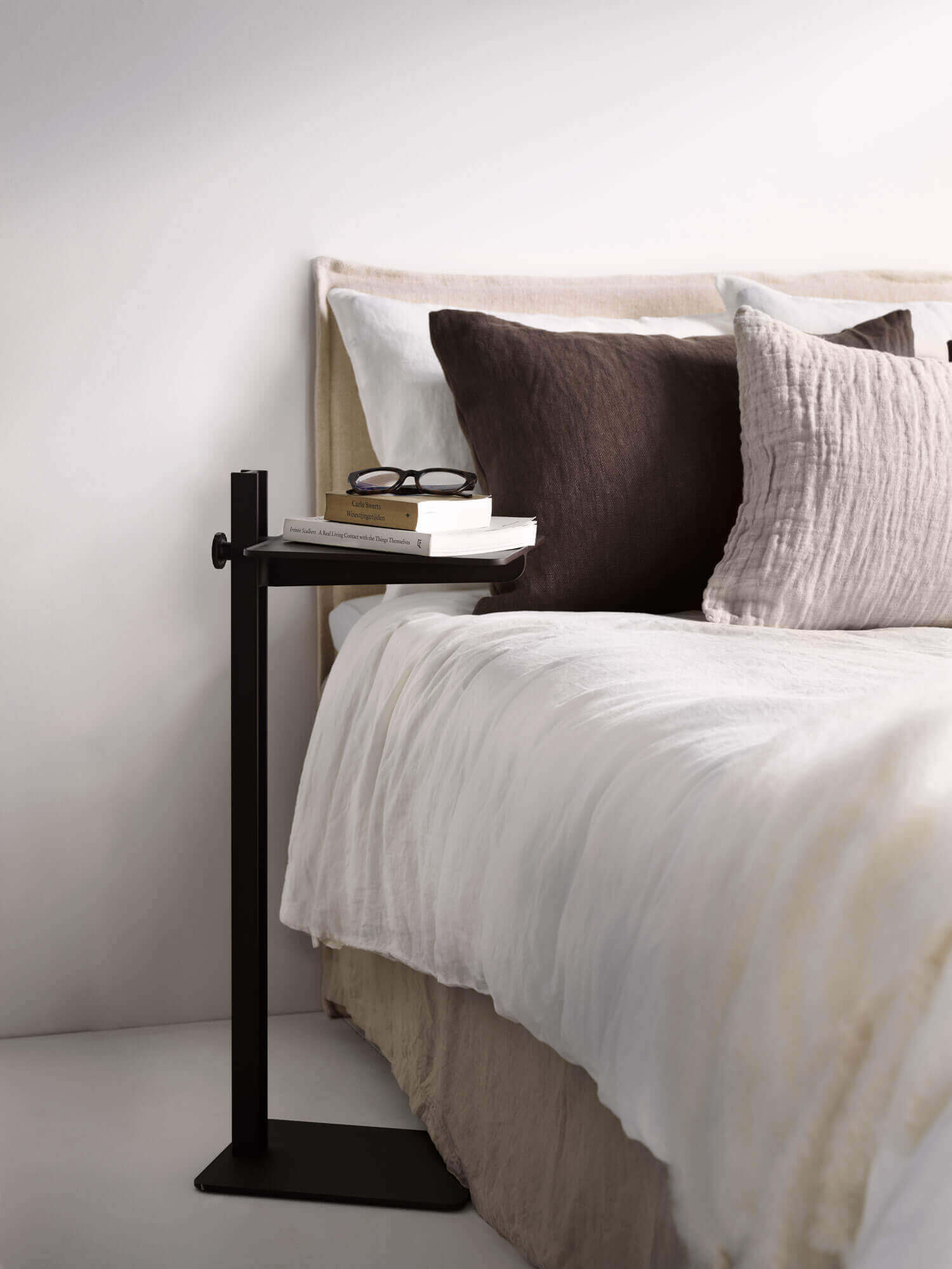 String Museum er et fleksibelt sidebord, der passer perfekt ved siden af sengen. Bordet er net og kan let flyttes ved behov. I samme serie tilbydes desuden Museum som vægmonteret hylde, et fremragende sengebord.
