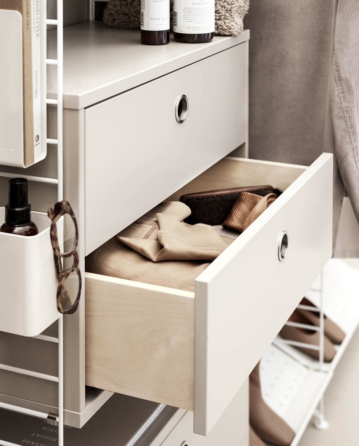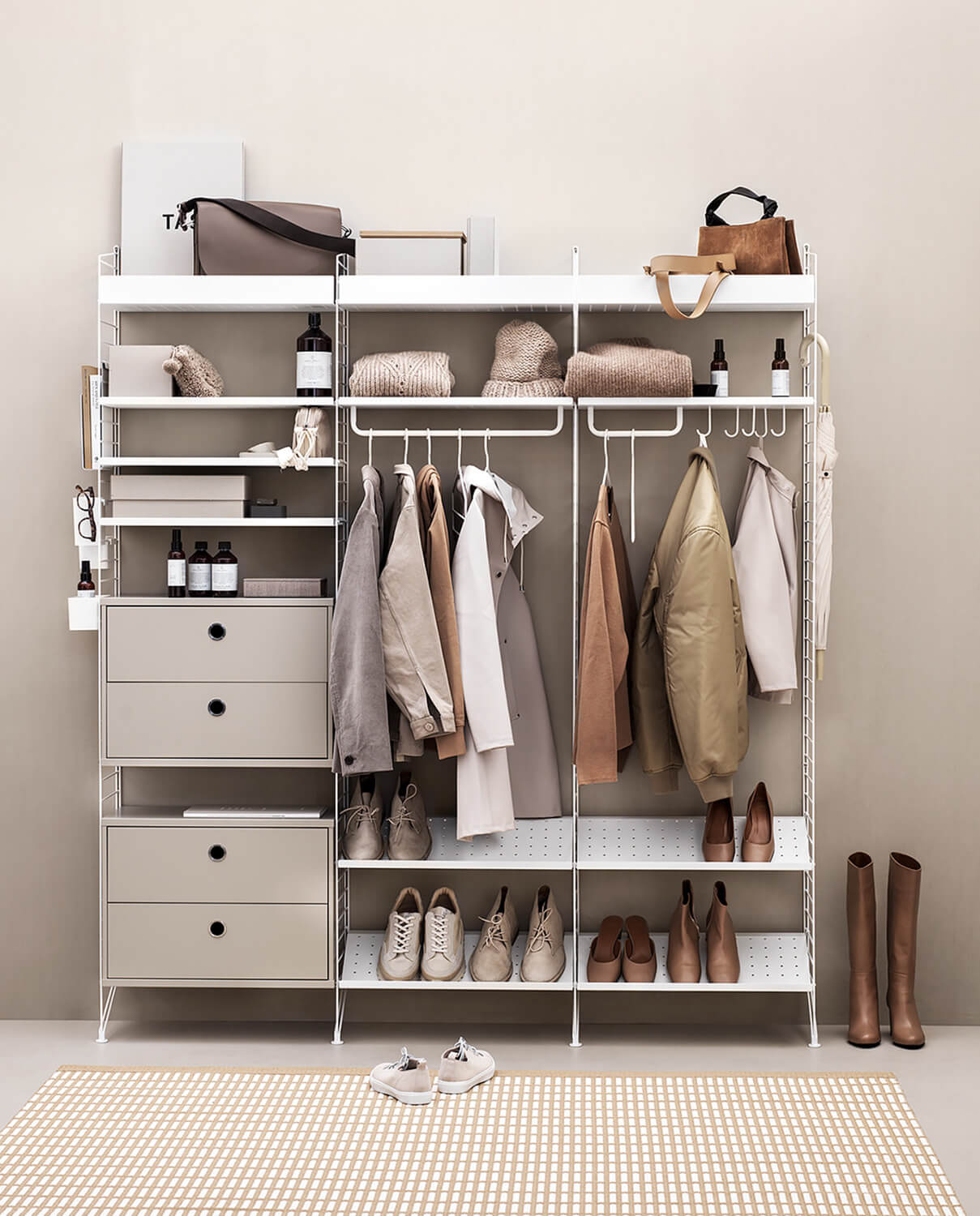 Der er intet bedre end at træde ind i en velorganiseret entré med alt tøjet pænt arrangeret. Både for dig og dine gæster. Entréen er det første, du ser, når du kommer hjem, og det første dine gæster møder, når de kommer på besøg. Lad dig inspirere af alle Stringreolens mulige kombinationer – som giver dig mulighed for at skabe opbevaring i entréen, nøjagtigt som du ønsker det.