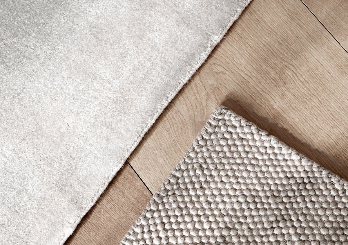 Løft den hyggelige stemning ved at bruge et tæppe under sengen. Tæppet giver en følelse af luksus og hygge, uanset om du har gulv af træ eller plastik. For at opnå hotelfølelsen foretrækkes et stort, tykt ryatæppe.
